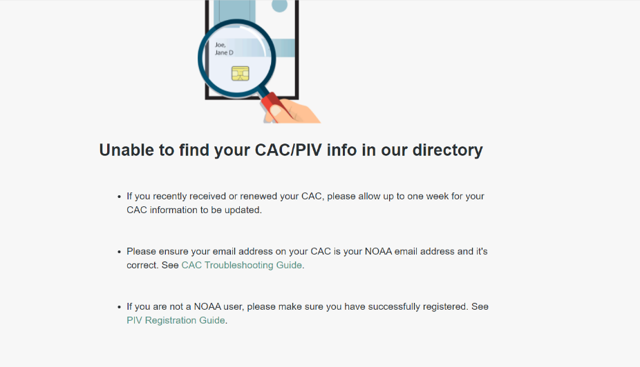 "Unable to find your CAC/PIV info in our directory" message