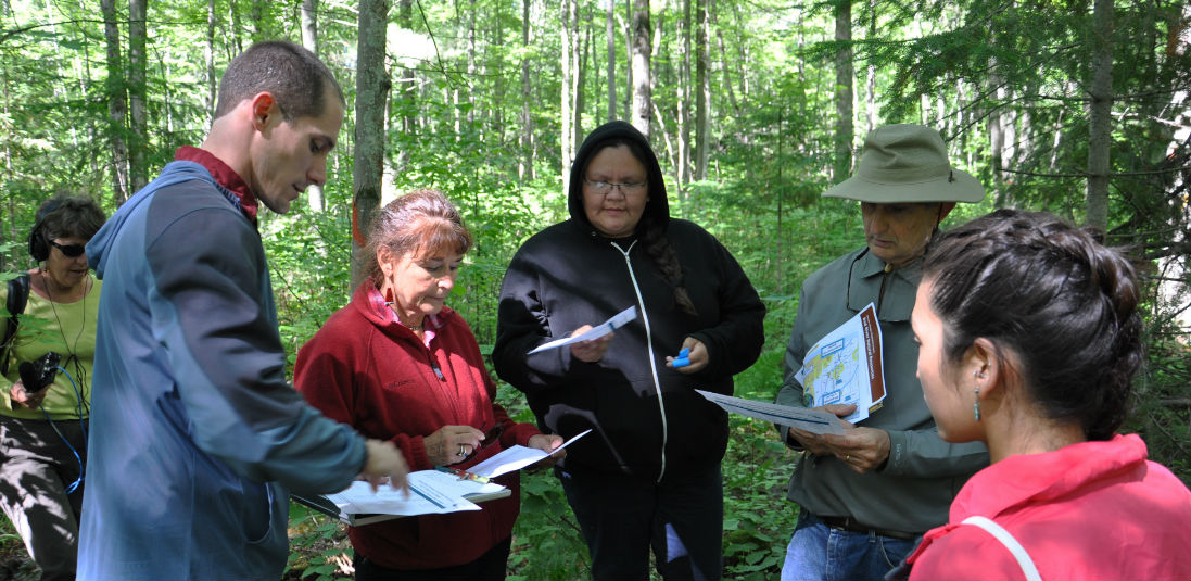 U.S. Forest Service-Northern Institute of Applied Climate Science staff lead a field exercise at a climate change teacher institute. The Institute was one of seven recipients of the Climate Adaptation Leadership Award. (Image credit: Cathy Techtmann, University of Wisconsin Extension)