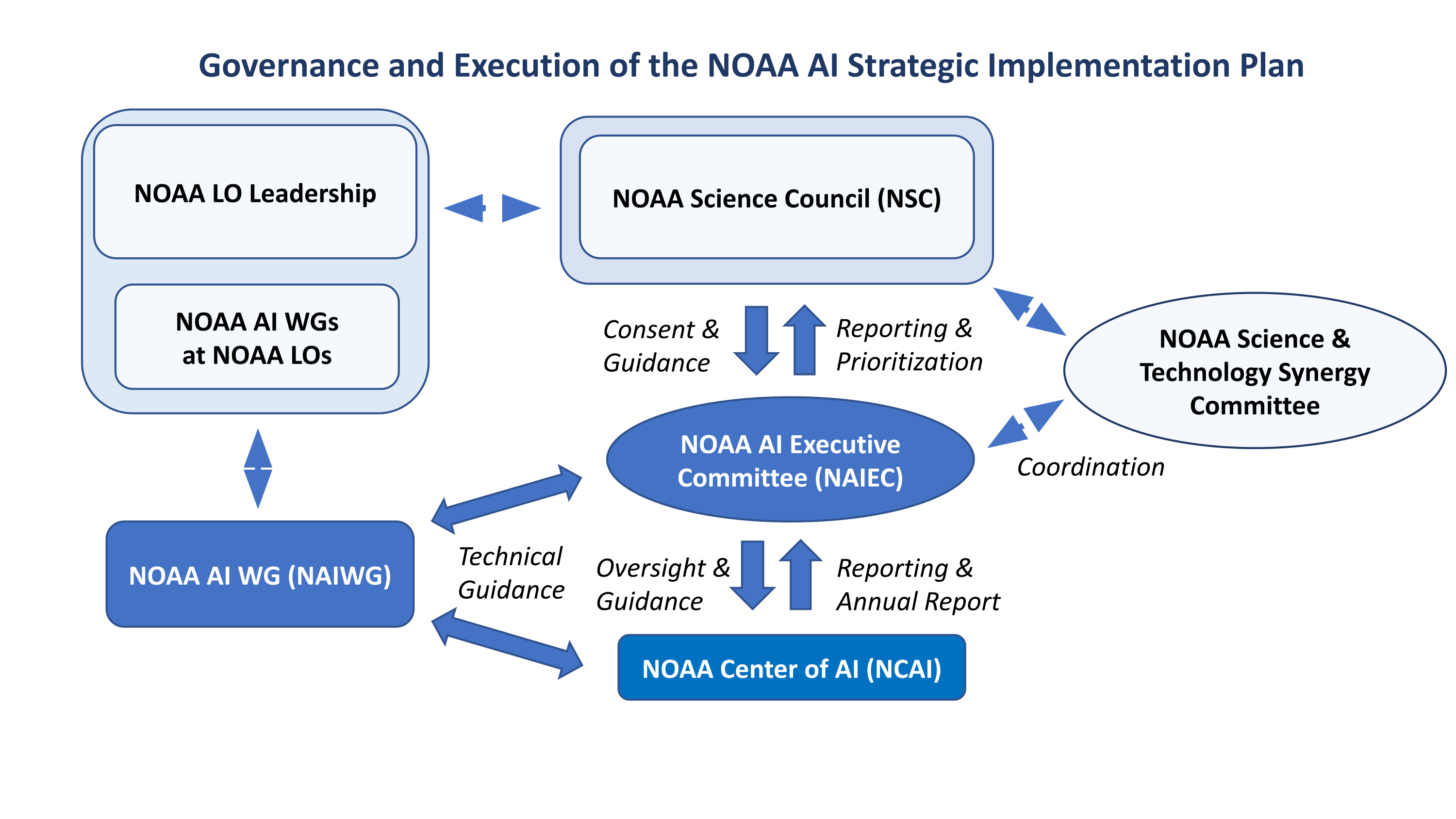 NCAI will serve as a central repository for AI-ready data and tools, and facilitate awareness and collaborations on AI efforts across NOAA. NCAI will enable NOAA communication activities with interagency, academic, and industry partnerships to increase awareness of NOAA R&D to utilize AI applications to improve organizational and operational efficiencies.