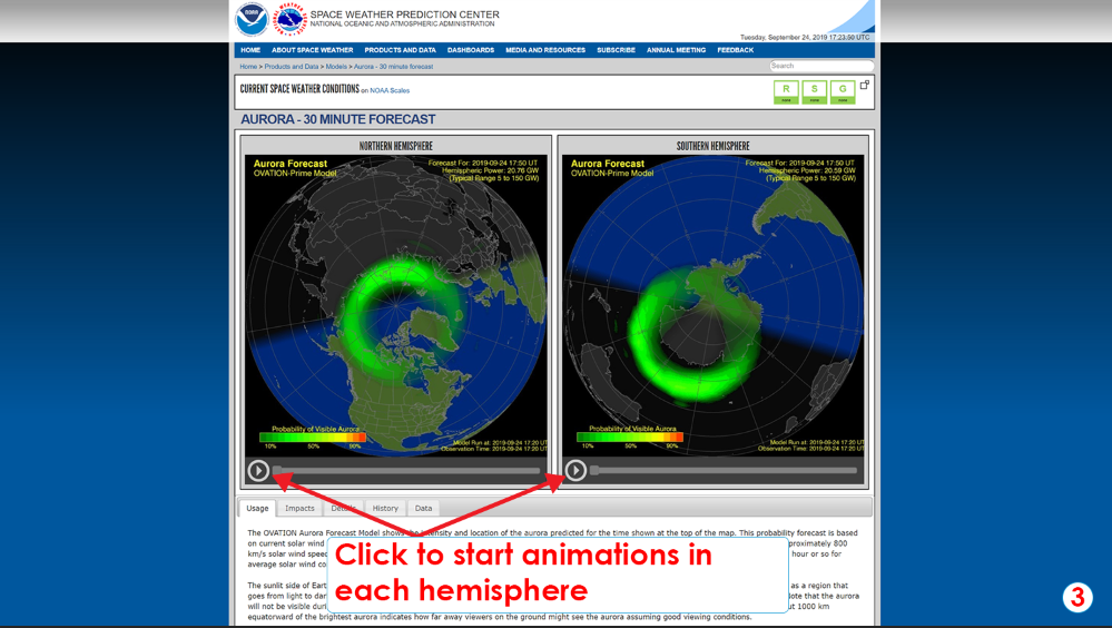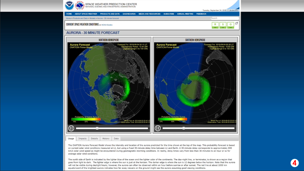 Did you know that outer space has weather too? Not rain or snow but winds and magnetic waves that move through space! NOAA’s Space Weather Prediction Center has the latest forecasts and outlooks. Here, you can view the forecast for the aurora in the Northern and Southern Hemispheres. If you'd like to learn more about space weather phenomena, check out the educational resources in our space weather collection.