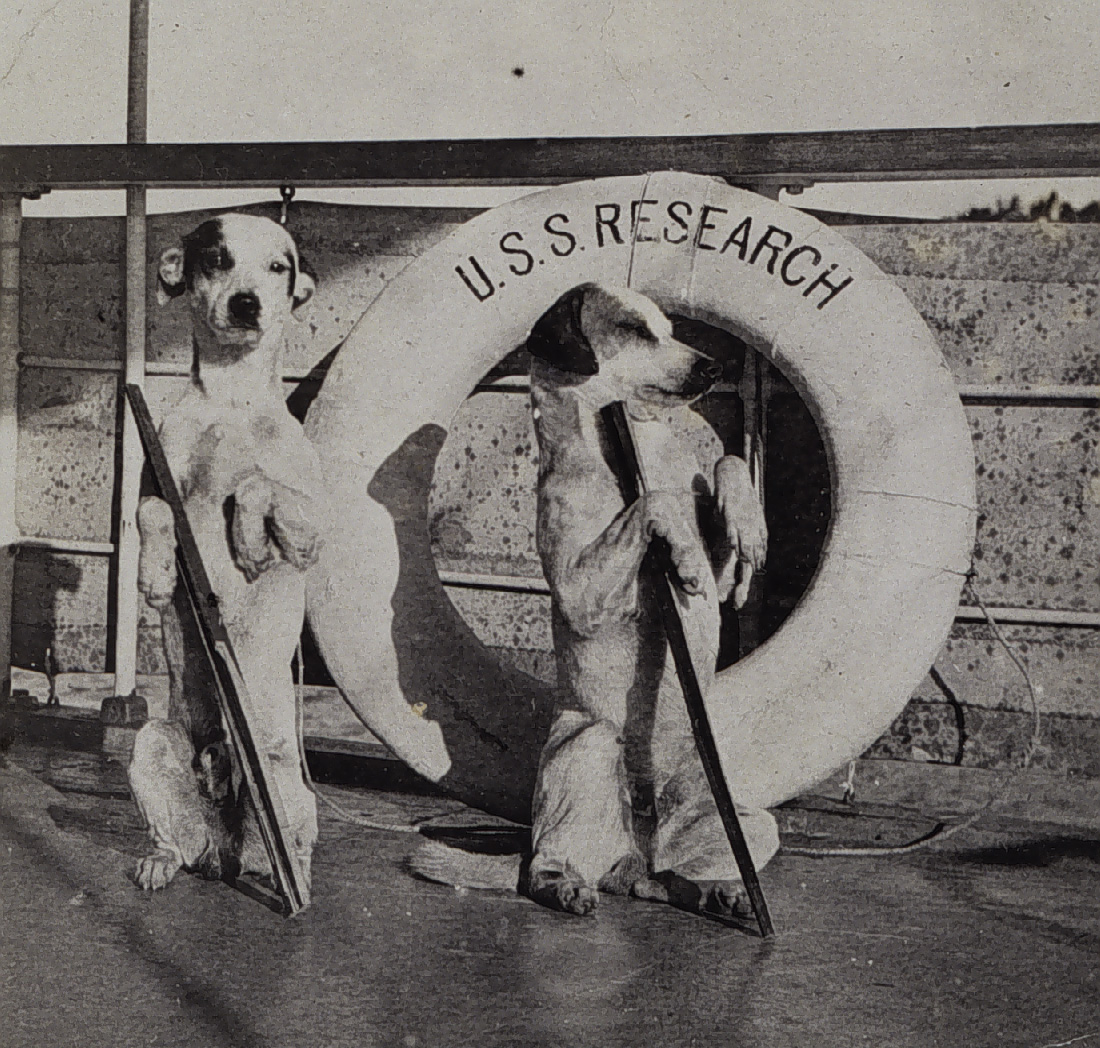 Who wouldn’t want these two fine pups as their mascots? They served aboard the USC&GSS Research. The 95-foot steamer was assigned to the Philippines from 1901 to 1918.