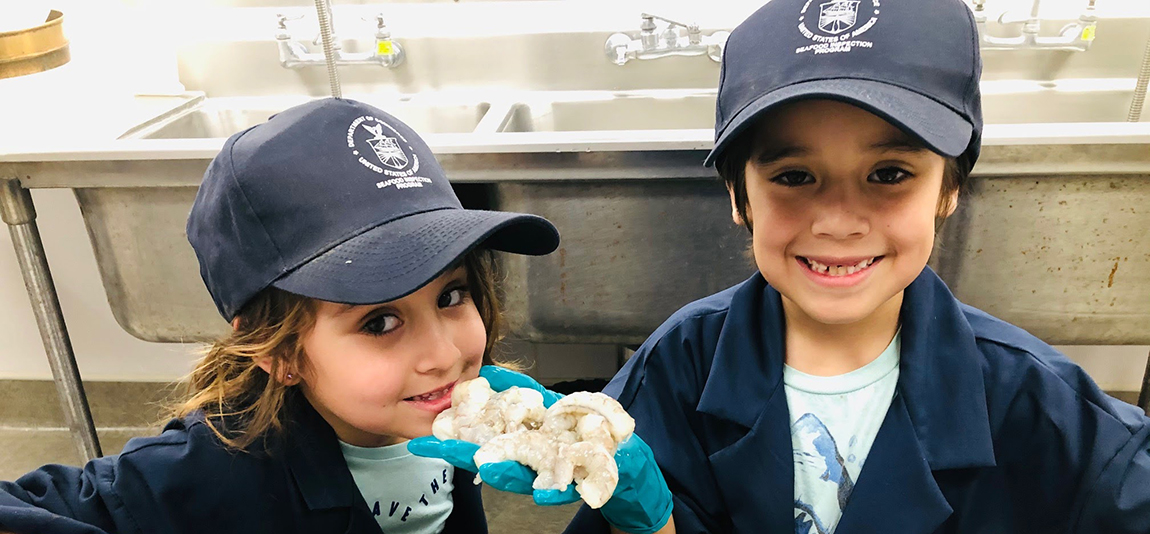 Kids visiting NOAA’s seafood inspection lab in Long Beach, California, learn how to inspect shrimp for quality, freshness and safety. (Image credit: NOAA/Briana Taylor)