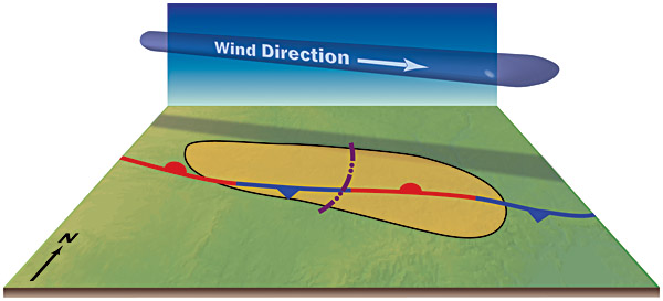 Mainly a summertime occurrence, these derechos usually are associated with a stationary front that is parallel to the upper level air flow.