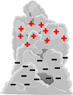 In the world of electricity, opposites attract and insulators inhibit. As positive and negative charges begin to separate within the cloud, an electric field is generated between its top and base. Further separation of these charges into pools of positive and negative regions results in a strengthening of the electric field.