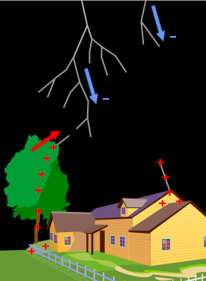 As the stepped leader approaches the ground, its strong negative charge repels all other negative charges within the immediate strike zone of the Earth's surface while attracting vast amounts of positive charge. The influx of positive charge into the strike zone is so strong that the stepped leader actually induces electric channels up from the ground known as "streamers".