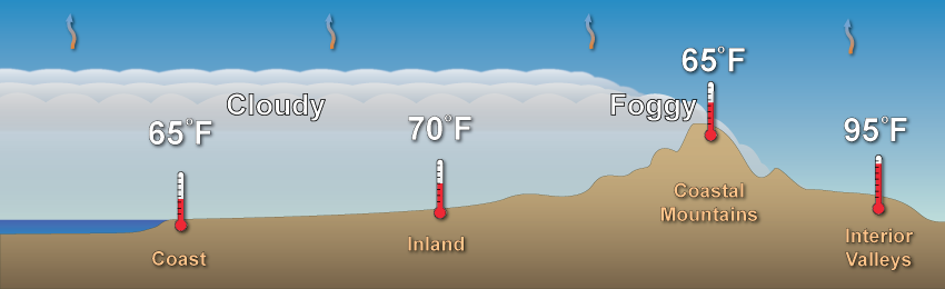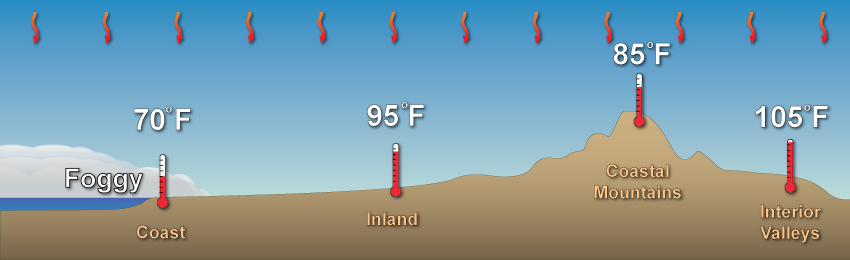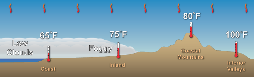 How the marine layer affects temperatures.