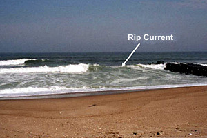 Rip currents are sometimes incorrectly called an “undertow”. However, a rip current is a horizontal motion, like a treadmill that carries people away from the shoreline. It is not something that pulls you under.