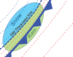 If precipitation is expected for locations pole-ward of the 540-thickness line, the rule of thumb is to predict snow.