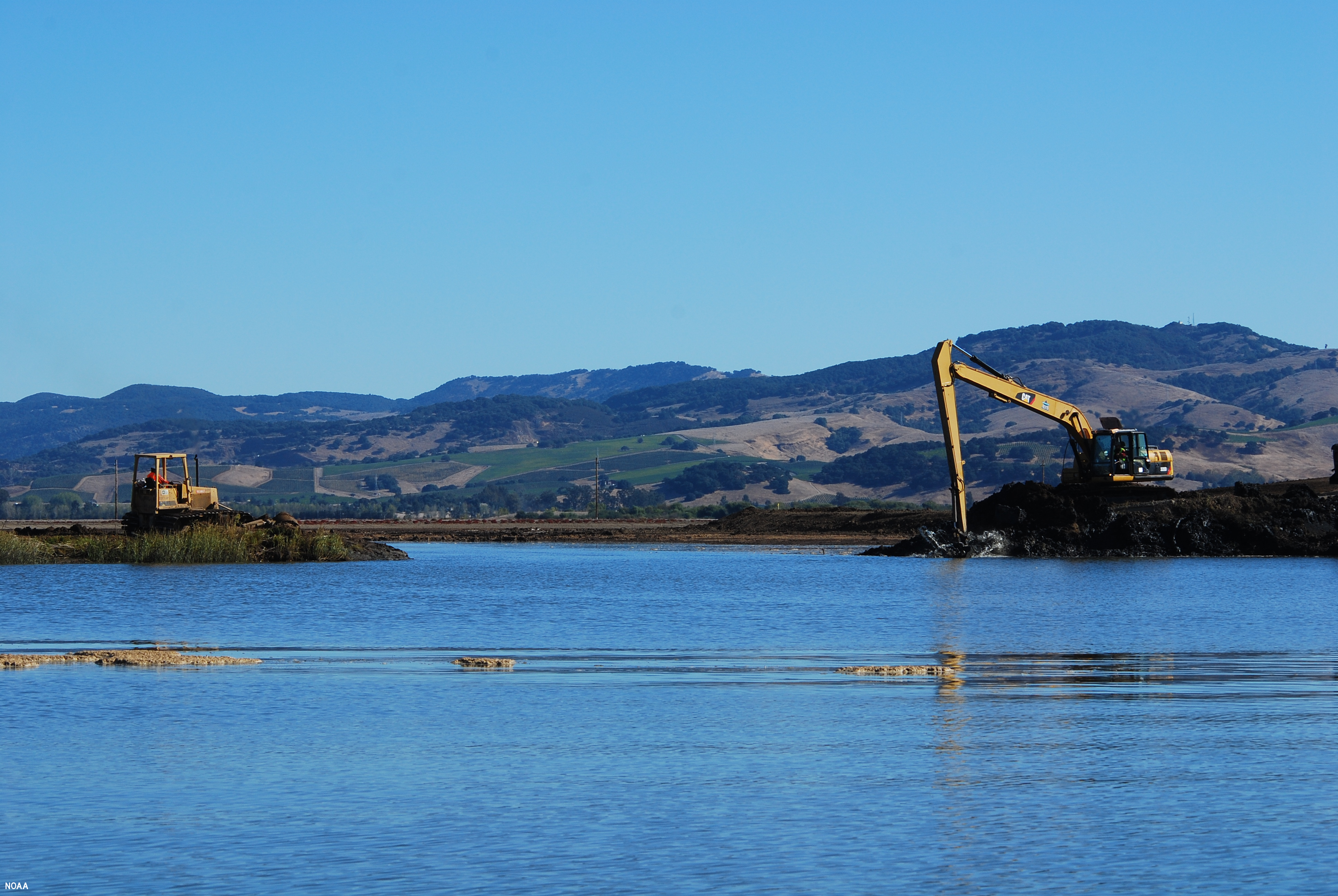 Construction to restore tidal marsh habitat in American Canyon, California, on September 29, 2009. (Image credit: NOAA)