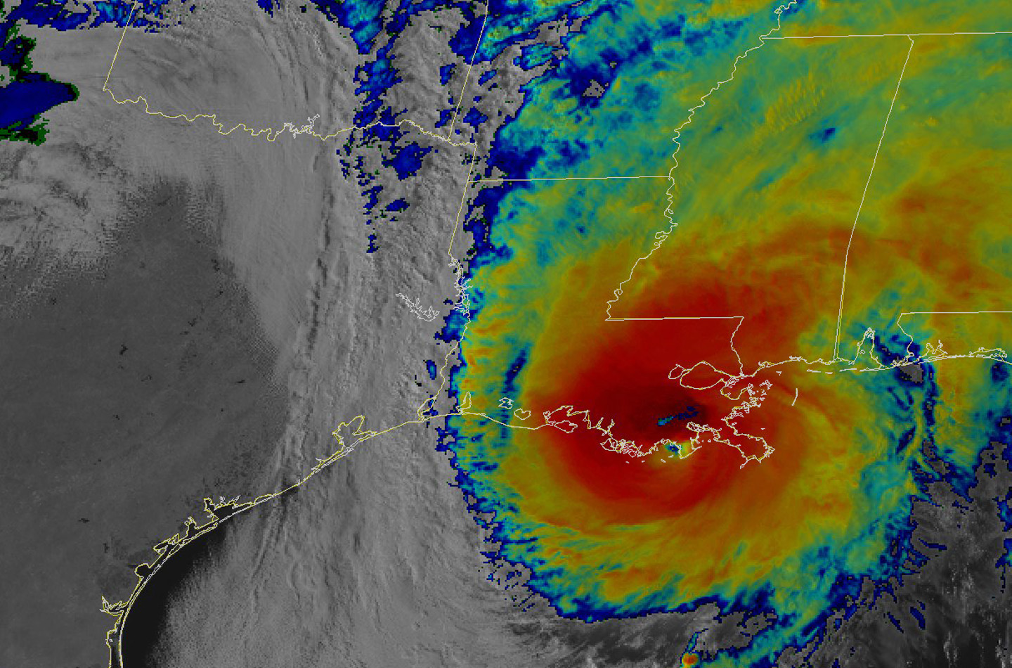 NOAA satellite imagery of Hurricane Zeta as it made landfall in southeastern Louisiana, near Cocodrie, the afternoon of October 28, 2020. (Image credit: NOAA Satellites)