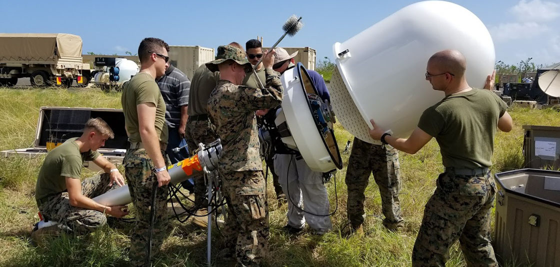Hurricane Maria Federal Response: U.S. military personnel collaborate with NOAA to install temporary DOD mobile radars in Roosevelt Roads and Aguadilla, Puerto Rico, to assist weather forecasting while the permanent FAA radars are under repair. (Image credit: NOAA)