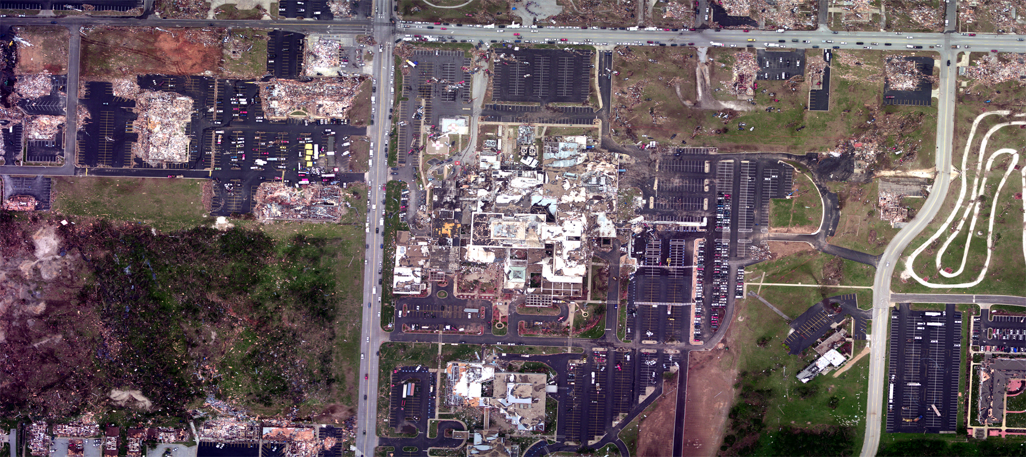 Aerial shot of St. John's Hospital in Joplin, Mo., following the May 22, 2011 EF-5 tornado. (Image credit: NOAA)