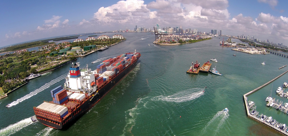 Cargo ship enters PortMiami. (Image credit: iStock)