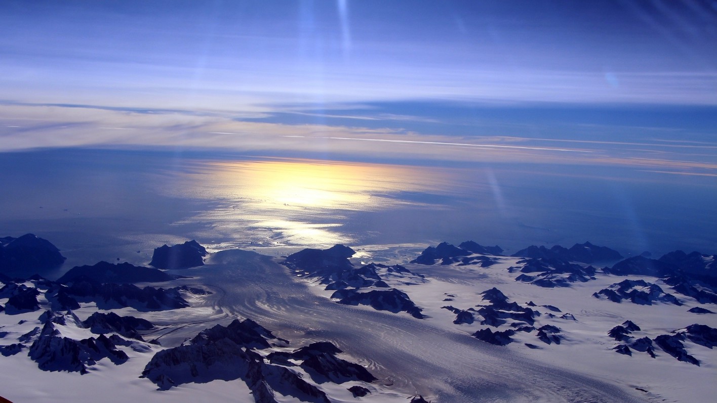 Greenland's Steenstrup Glacier with midmorning sun glinting off the Denmark Strait in 2016. (Image credit: NASA)