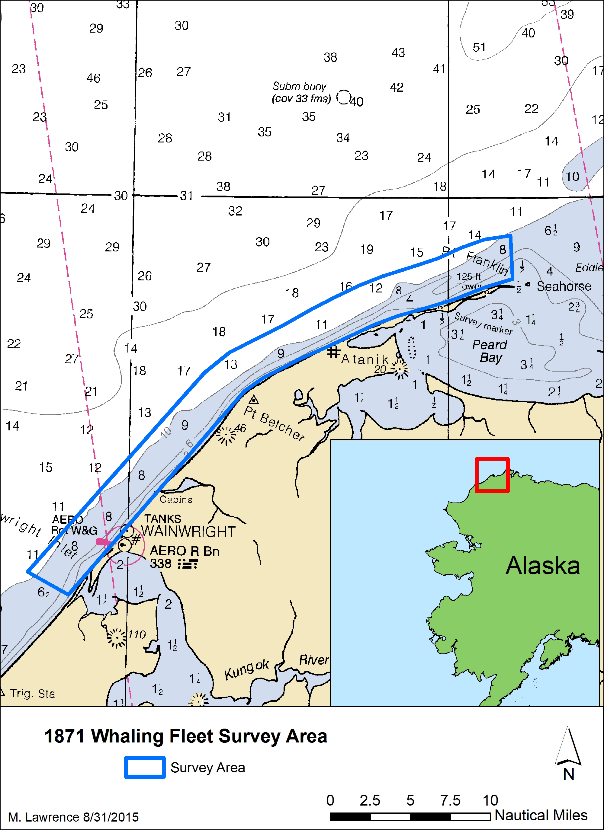 With less ice in the Arctic as a result of climate change, archaeologists now have more access to potential shipwreck sites than ever before. In September, a team of archaeologists from theMaritime Heritage Program in NOAA’s Office of National Marine Sanctuaries scoured a 30-mile stretch of coastline in the nearshore waters of the Chukchi Sea, near Wainwright, Alaska. Previous searches for the ships had found traces of gear salvaged from the wrecks by the local Inupiat people, as well as scattered timbers stranded high on the isolated beaches that stretch from Wainwright to Point Franklin.
