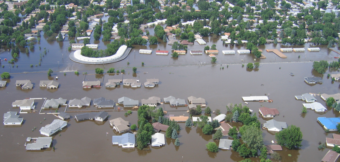 NOAA's National Weather Service urges communities in northern North Dakota to prepare for moderate to major flooding on the Souris River this spring. Last time the river flooded was in 2011 (as pictured here, near Minot.) (Image credit: Courtesy of the North Dakota State Water Commission)