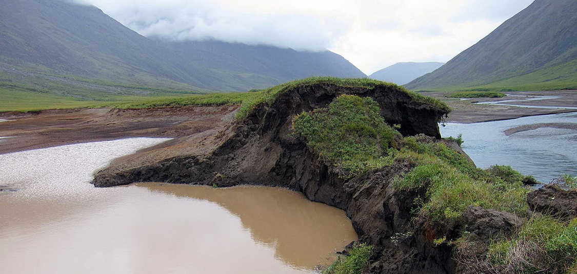 Permafrost is thawing across the Arctic, causing northern lands to sink or change shape. In Gates of the Arctic National Park, a bank of this lake thawed, allowing the Okokmilaga River to cut through and drain it to sea. Scientists are particularly concerned about what will happen as the frozen ground releases carbon dioxide and methane that were formerly stored under the surface. (Image credit: National Park Service )