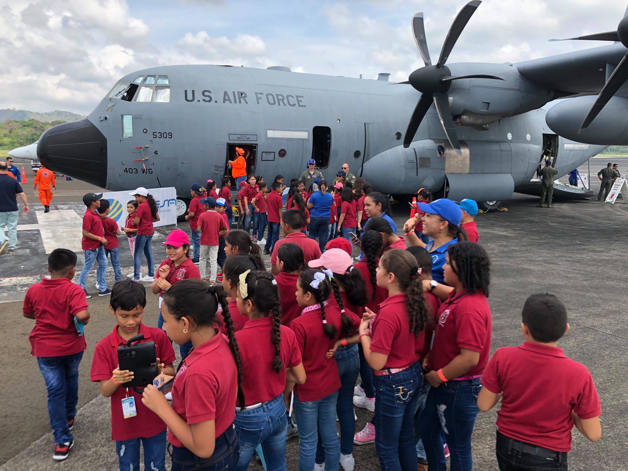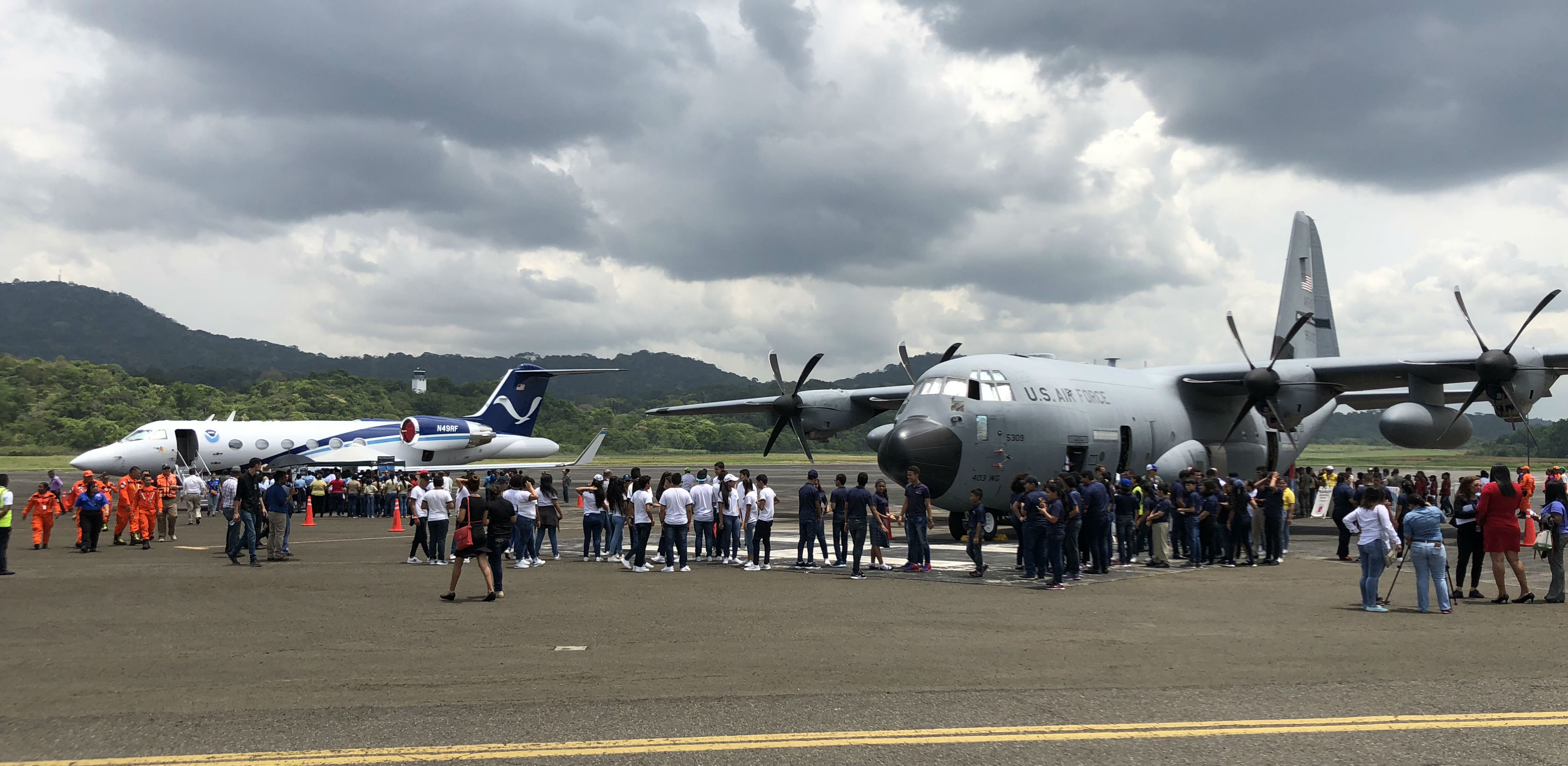 Visitors wait to board NOAA and USAF Reserve hurricane hunter aircraft in Panama City, Panama during the 2018 Caribbean Hurricane Awareness Tour. (Image credit: NOAA)