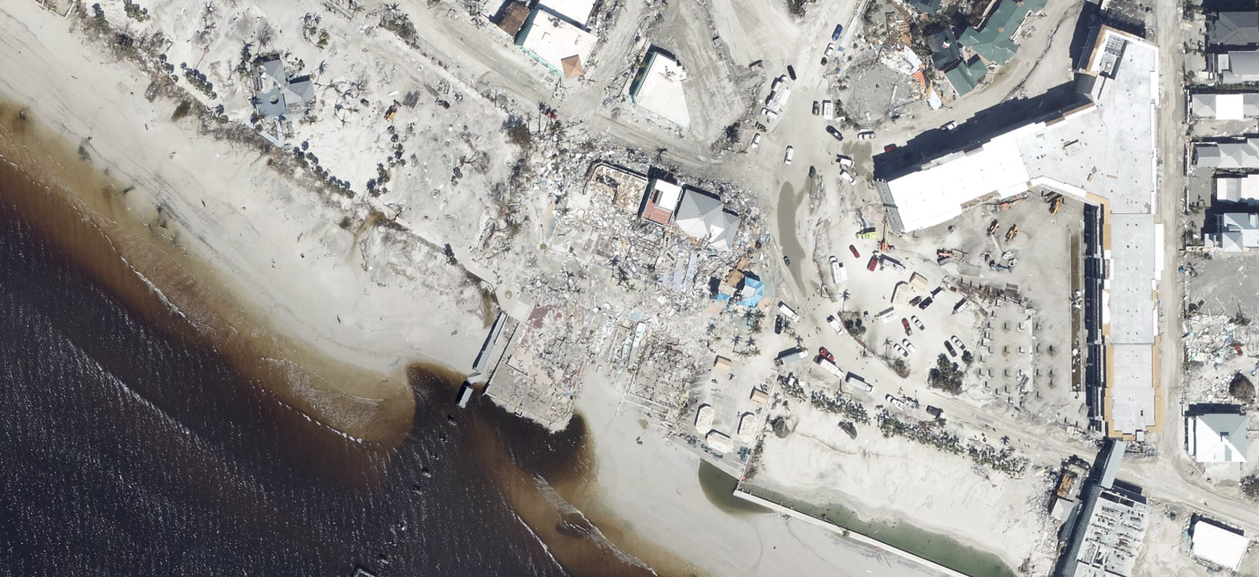 Aerial imagery from NOAA's National Geodetic Survey of damage in the Times Square district of Fort Myers Beach, Fla., after Category 4 Hurricane Ian struck the area. (Image credit: NOAA)