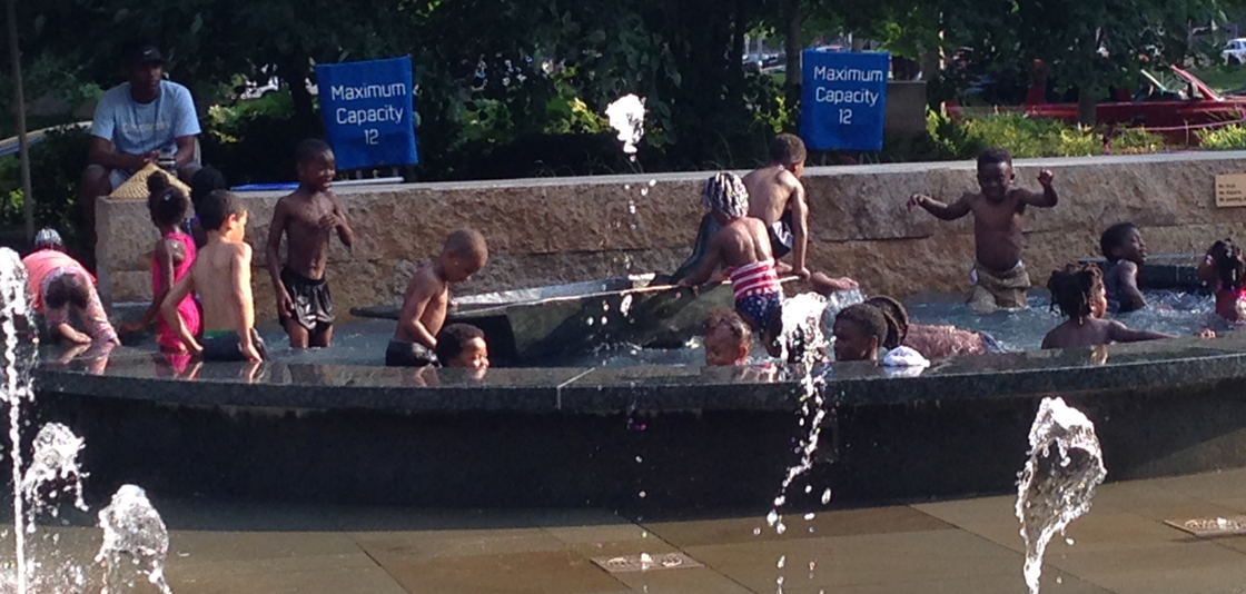 Kids playing in a fountain at Citygarden, an urban park and sculpture garden in St. Louis, Missouri on June 22, 2016 -- it did happen to be nearly 100 degrees that day! (Image credit: Brady Phillips/NOAA)