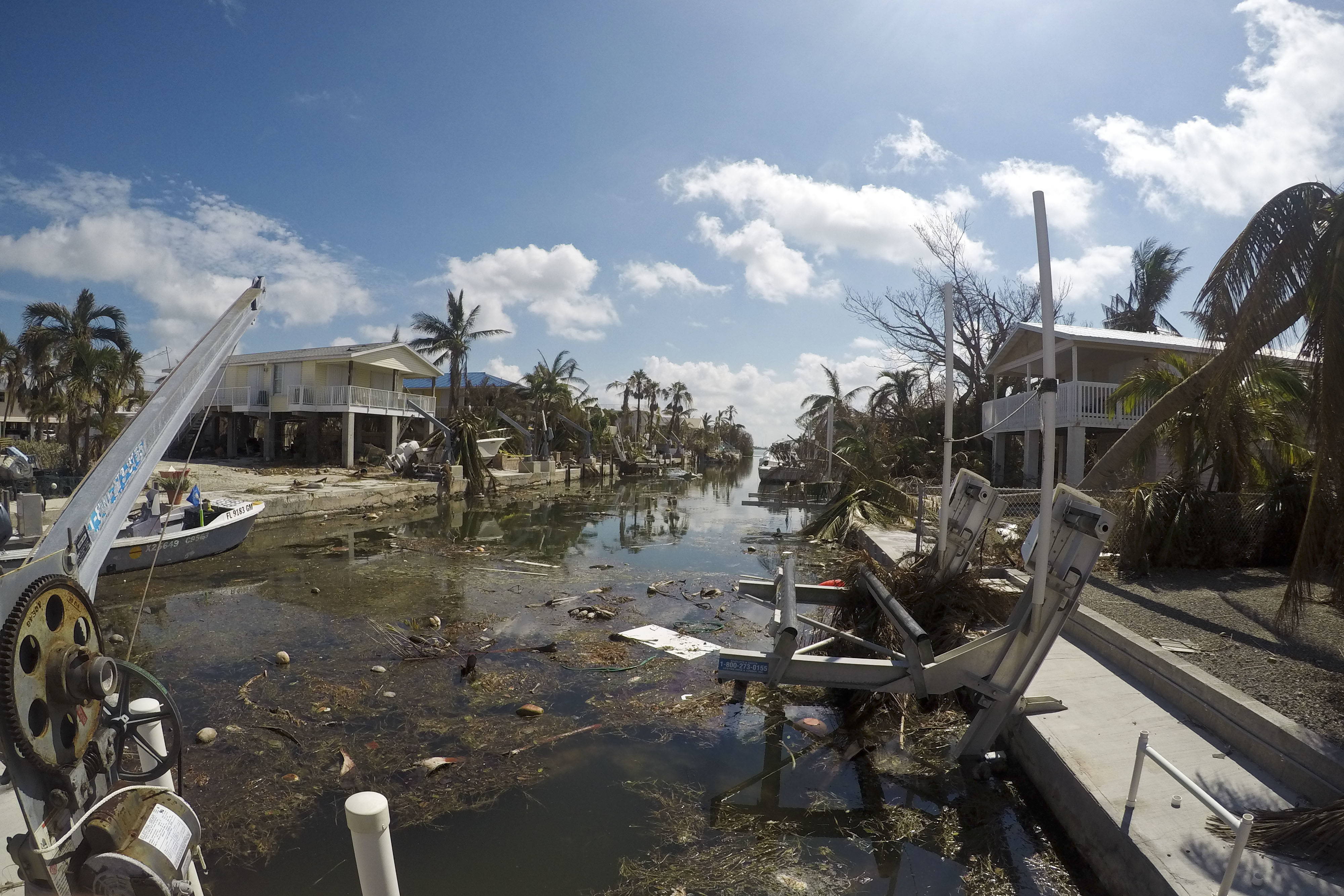 A debris-filled waterway in Key West, Florida shows the destructive power of Hurricane Irma's storm surge (Image credit: US Coast Guard)