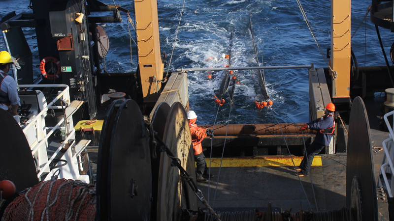 Trawling a net behind a boat is a long-standing way of catching fish at sea. NOAA research vessels use trawling for many of the agency's fisheries surveys every year, providing important data that have helped the U.S. become a model of sustainable fisheries. This series of photos shows how a trawl operation collects those data for scientists and fisheries managers. The information plays key roles in fishery stock assessments and ecosystem science studies.