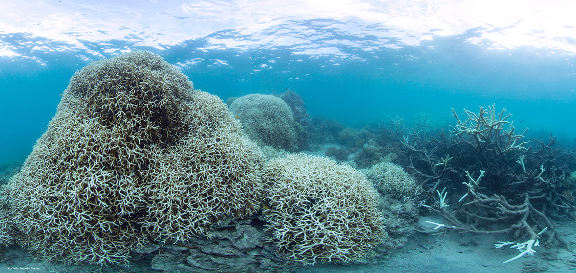 Coral bleaching at Lizard Island on the Great Barrier Reef, March 2016. (Image credit: Courtesy of The Ocean Agency/XL Catlin Seaview Survey/Chrisophe Bailhache)