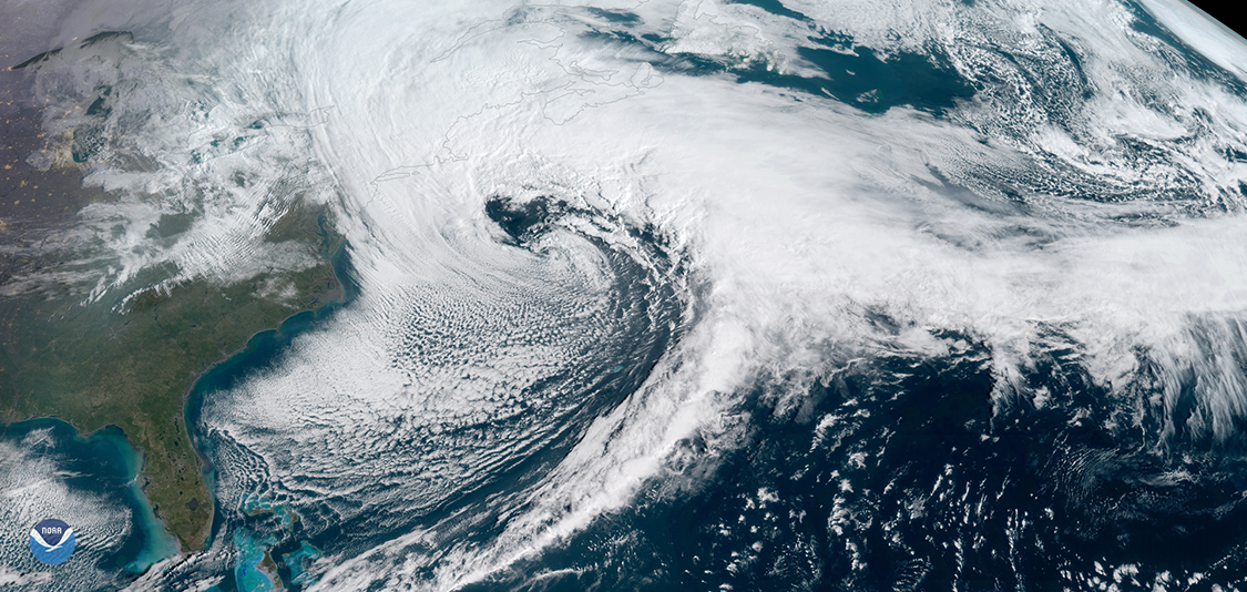 NOAA's GOES East satellite captured this nor'easter over the U.S. East Coast March 13, 2018. It was the third nor’easter to hit the region in 10 days. A fourth nor’easter hit the same region March 21. Some parts of the Mid-Atlantic, including Washington, D.C., saw their biggest snowfall this winter, even as the fourth storm arrived a day after the spring equinox. (Image credit: NOAA NESDIS)