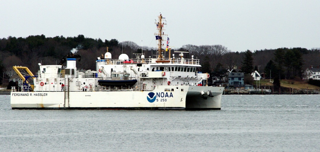 The NOAA Ship Ferdinand Hassler heads out to survey. 2016 marks the nation's 182nd hydrographic surveying season, collecting data for over two thousand square nautical miles in high-traffic U.S. coastal waters. (Image credit: NOAA)