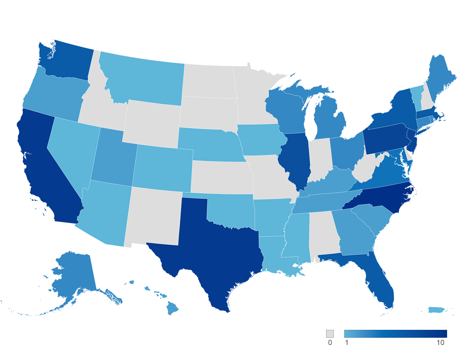 including all U.S. states, Washington, D.C., the Virgin Islands, and Puerto Rico