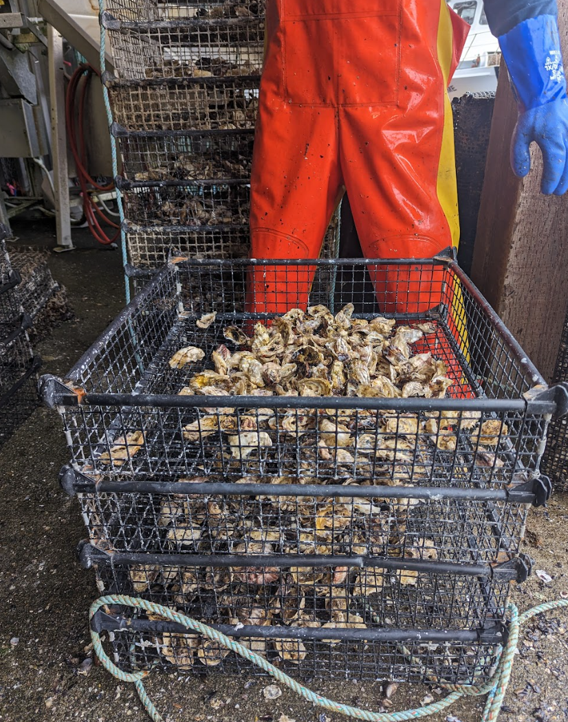 Overall, the intertidal oysters seemed to be the most promising. When comparing our intertidal tumble cages to the farm’s traditional floating bags and stacks, the oysters grew comparably and became slightly more marketable. Even better, the intertidal oyster cages have little to no biofouling species. Further, besides building the array, we put no manual labor into growing those intertidal oysters. In comparison, our subtidal oysters seemed to have grown the largest shells; however, the cages had extensive biofouling and needed some additional cage upkeep.