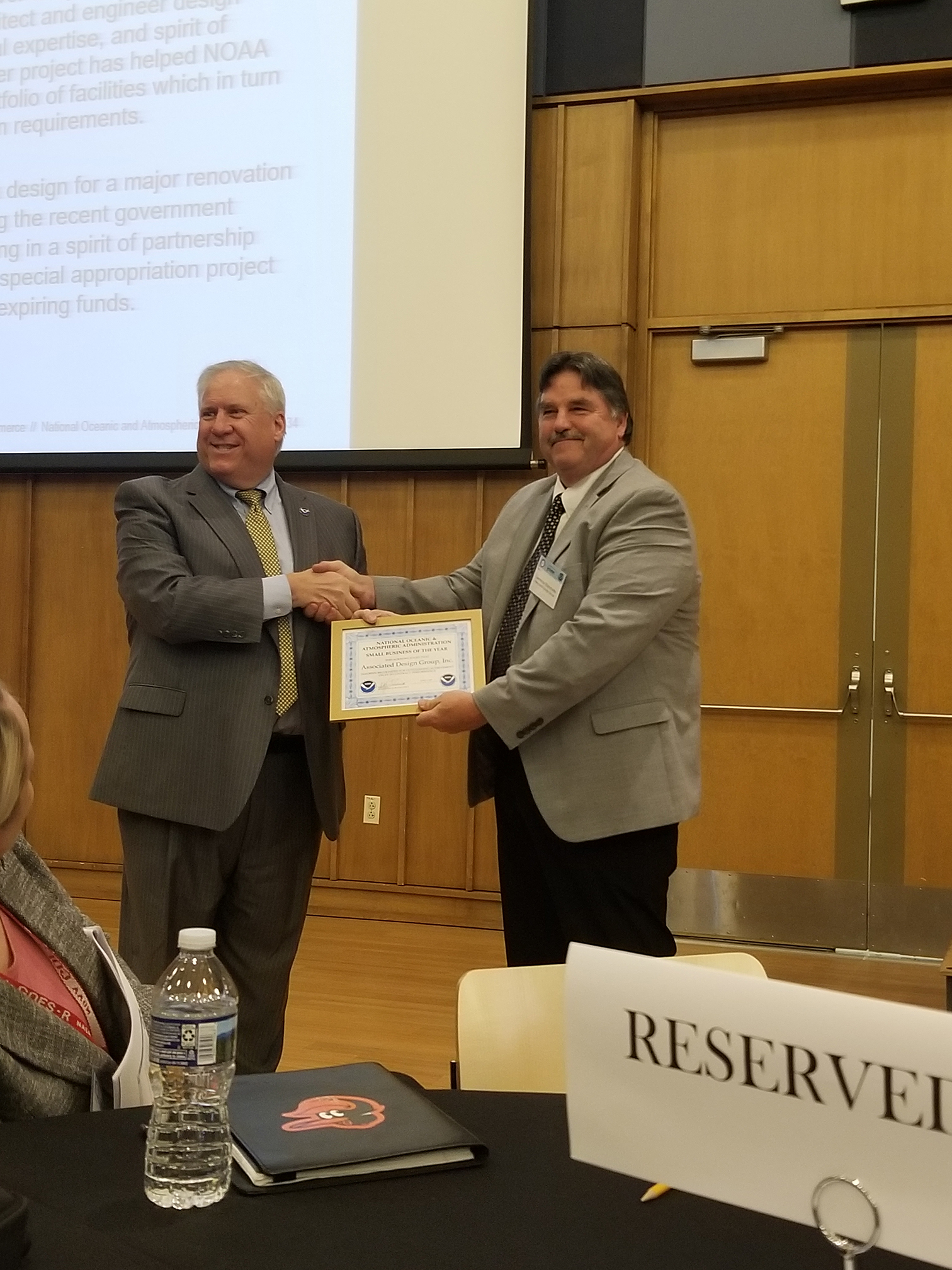 Associated Design Group, Inc. (ADG) Executive Officer Larry Blanchette received the award from AGO Director Jeffrey Thomas on April 4, 2019. NOAA’s first Small Business of the Year Awards were presented during Small Business Industry Day, with over 400 attendees.