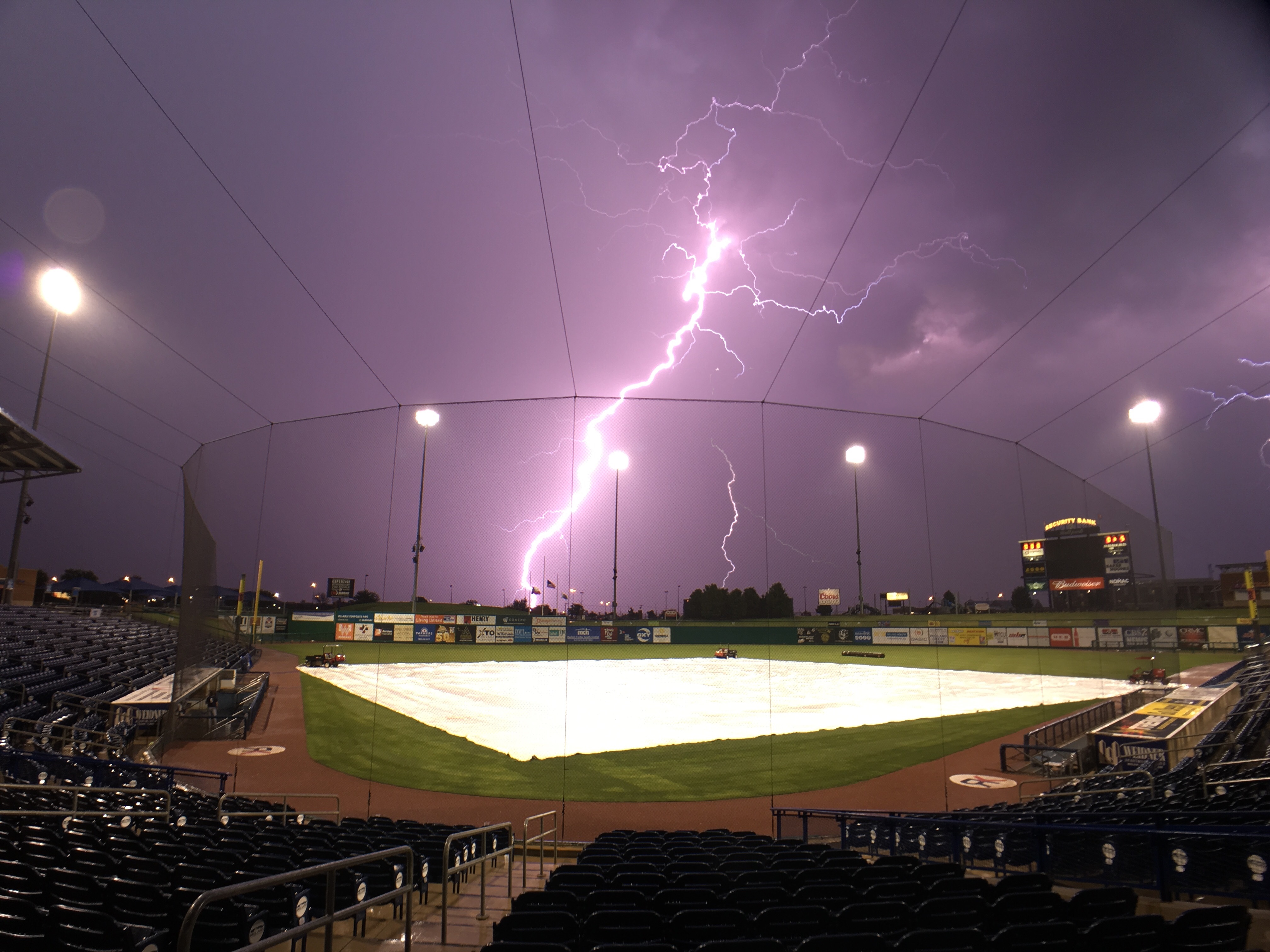 Lightning strikes Citibank Ballpark in Midland, Texas. (Image credit: Courtesy of Brian Curran/NOAA National Weather Service)