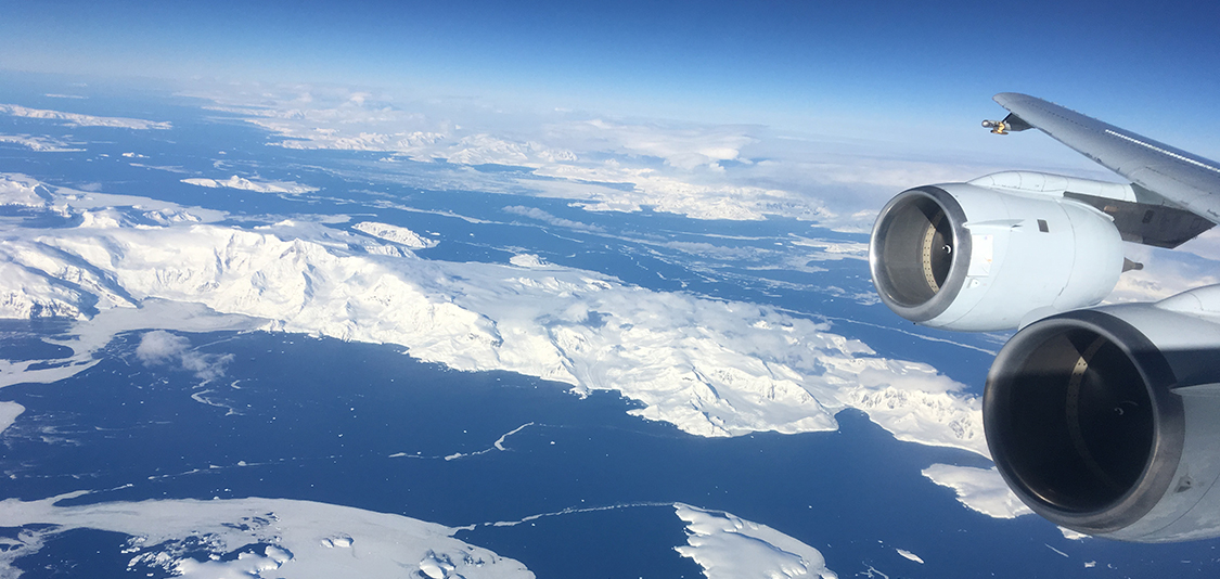 The NASA DC-8 approaches Antarctica on Oct. 14 as part of joint NASA/NOAA mission to study short-lived greenhouse gases over the remote ocean. (Image credit: Chelsea Thompson/CIRES)