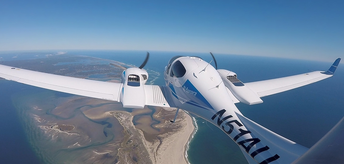 The Centaur flies over Nantucket, Massachusetts, as part of a project to identify great white sharks. The plane was operated remotely from a nearby research vessel. (Image credit: Courtesy of Aurora Flight Sciences)