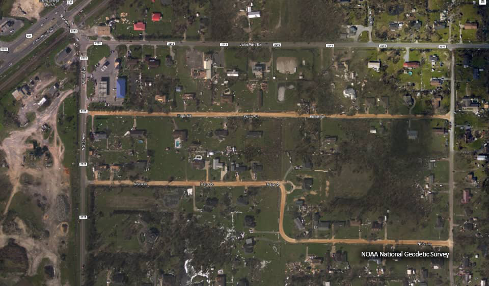 Scroll down to see the hurricane damage near Bayou George, Florida.