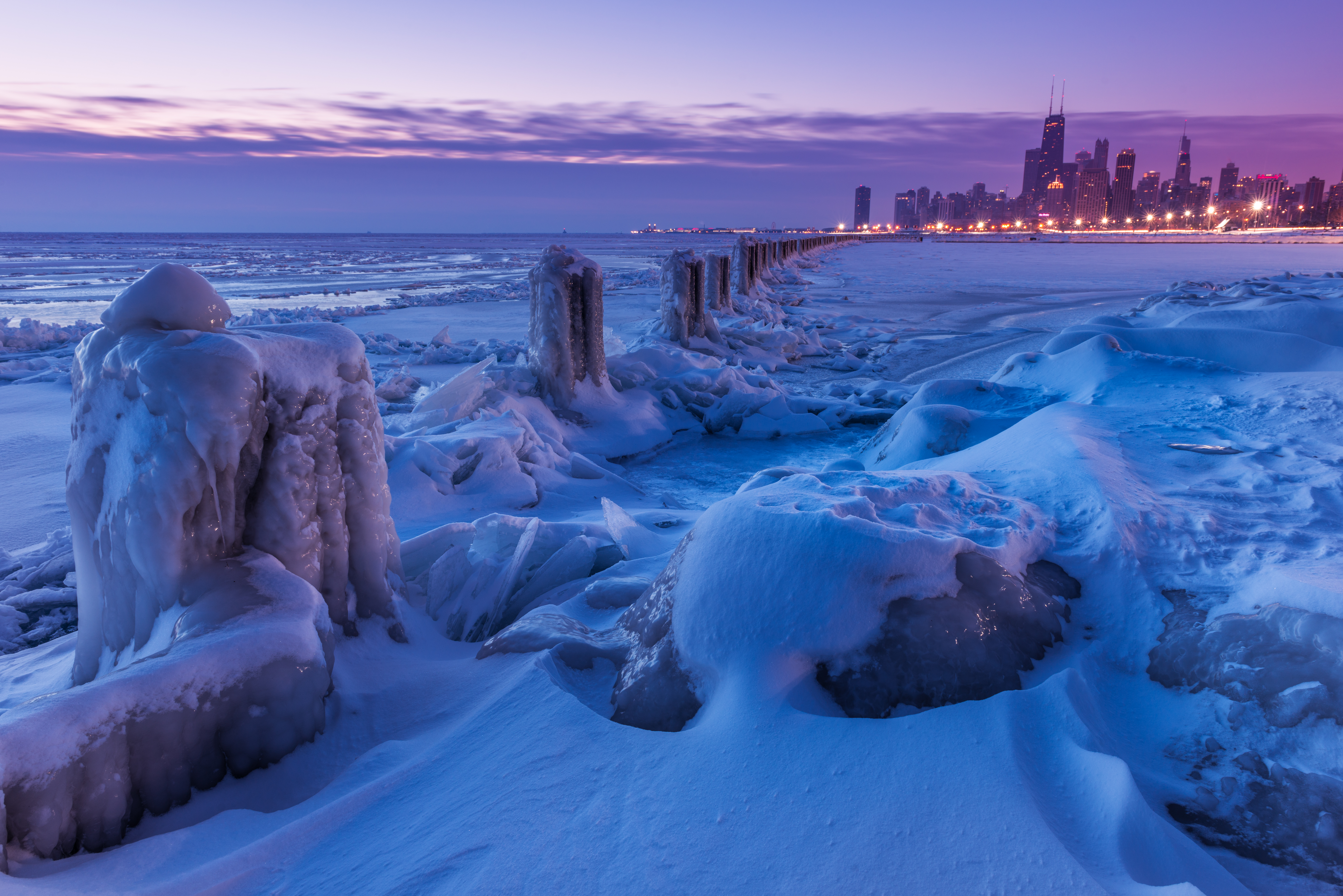 A frozen Chicago lakefront. Even as the Arctic warms, cities in the Northern Hemisphere have experienced outbreaks of extremely cold weather during the last several winters. (Image credit: Justin Kern/NOAA CIRES)